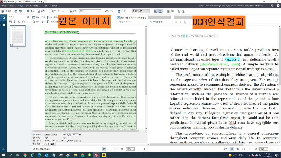 인식 언어를 적절하게 설정함으로써 OCR인식률도 높일 수 있어요.