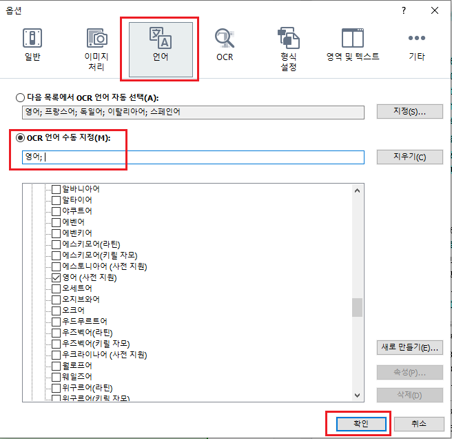 ※OCR인식 언어 설정 방법