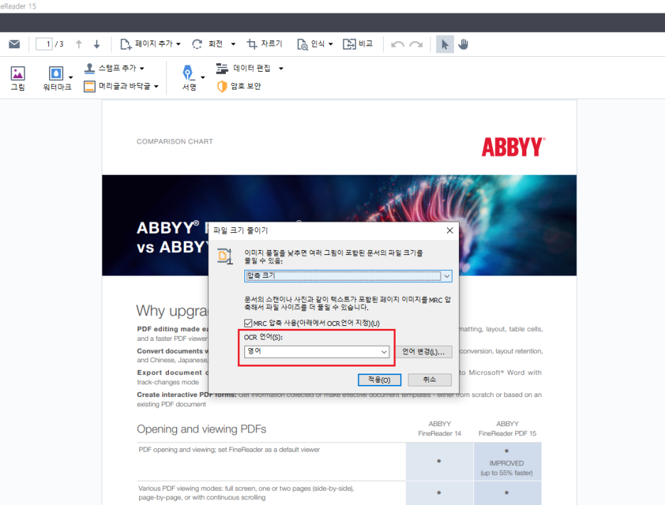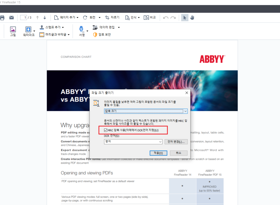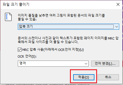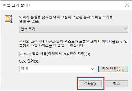 ※ 텍스트가 좀 더 선명하길 바란다면 MRC 압축 사용 체크 해제 후 사용해 보세요!