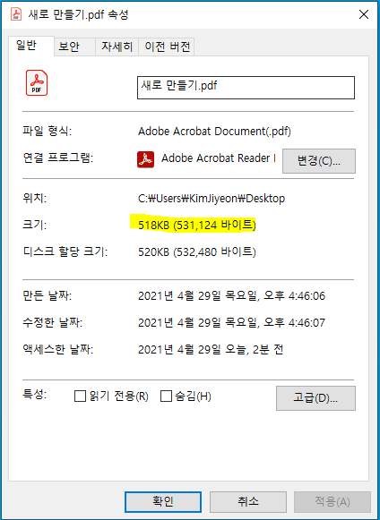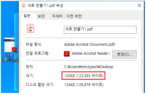 4. PDF파일 크기가 403M에서 23.4MB로 줄어든것을 확인해 보세요.