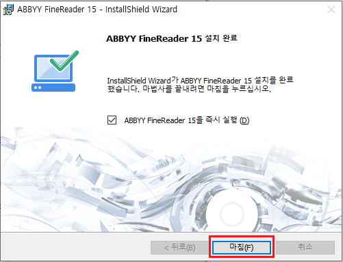 6. ABBYY FineReader 15 시험판이 설치 완료 되었습니다.