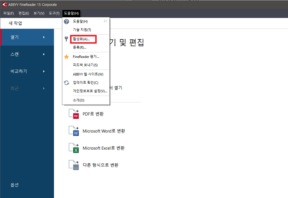 마침을 누르면 ABBYY FineReader15가 실행됩니다. 자유롭게 테스트 해보세요~