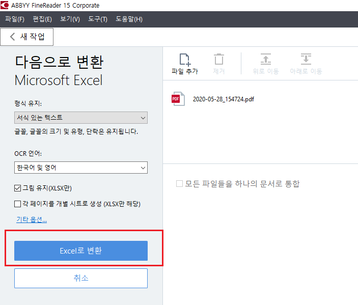 Excel로 변환을 누른 후 저장을 눌러주세요.