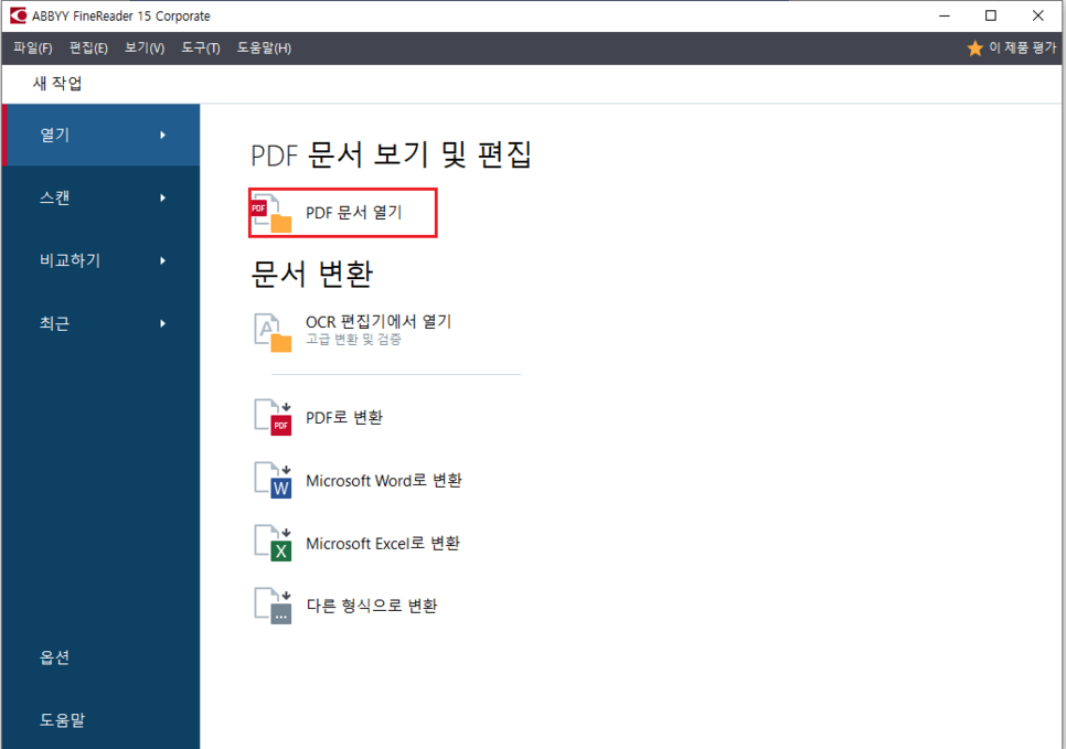 2. 프로그램 실행 후 PDF 문서 열기로 검색할 PDF 파일을 열어줍니다.