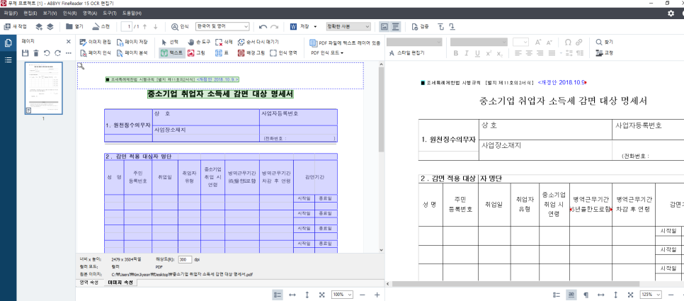 <ABBYY FineReader PDF 15로 OCR 처리한 모습>