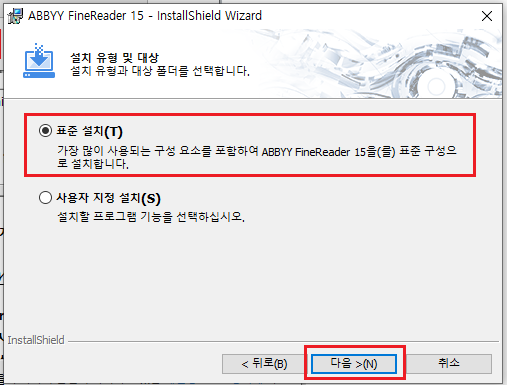 4. 표준 설치로 선택 후 다음을 눌러주세요.