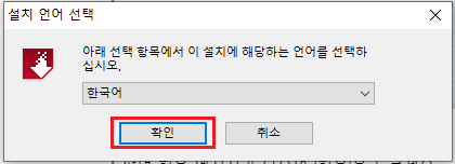 2. 설치 언어에서 한국어를 선택 후 확인을 눌러주세요.