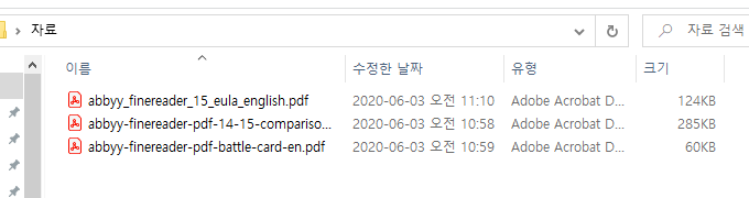 2. 파인리더PDF 시험판 설치 후 하나의 파일로 합치려는 PDF파일을 준비합니다.