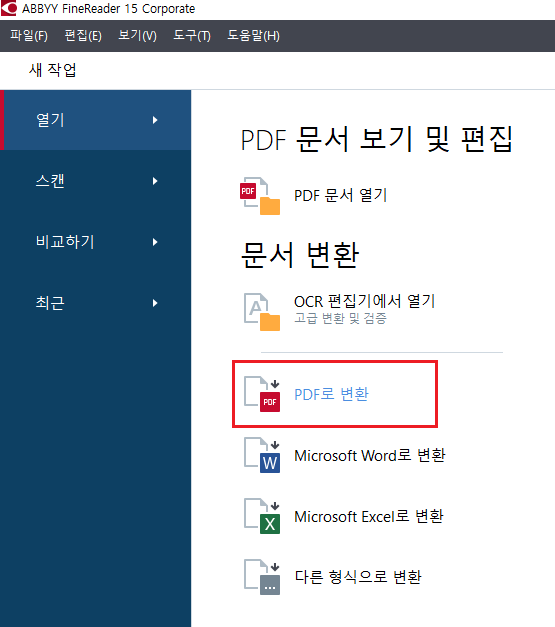 1. 파인리더PDF를 실행한 후 메인화면에서 "PDF로 변환"을 눌러주세요~