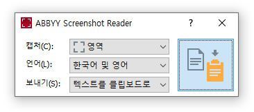 ABBYY 스크린샷 리더를 실행 시키면 아래와 같은 창이 뜹니다.