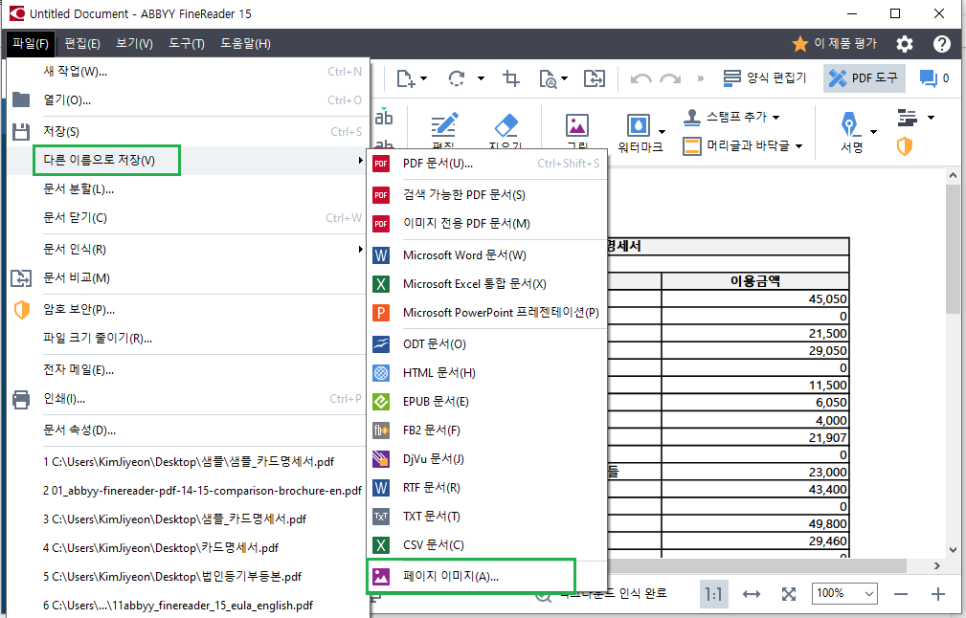[파일] - [다른 이름으로 저장] - [페이지 이미지] 클릭!