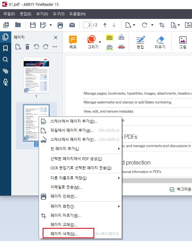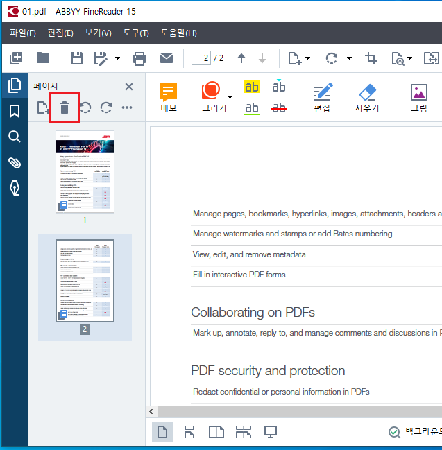 PDF 페이지 삭제