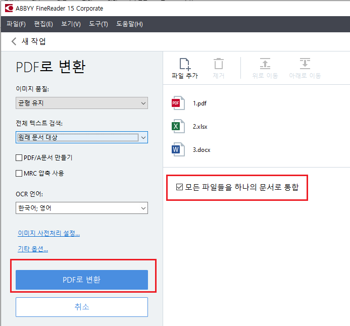 체크 되어 있는지 확인 후 PDF로 변환 클릭!