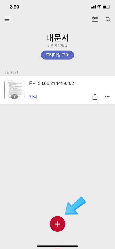 1. 모바일 앱을 열고 문서를 촬영합니다.