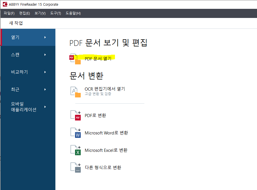 PDF 문서 열기로 PDF파일을 열어주세요.