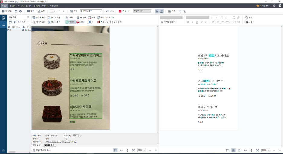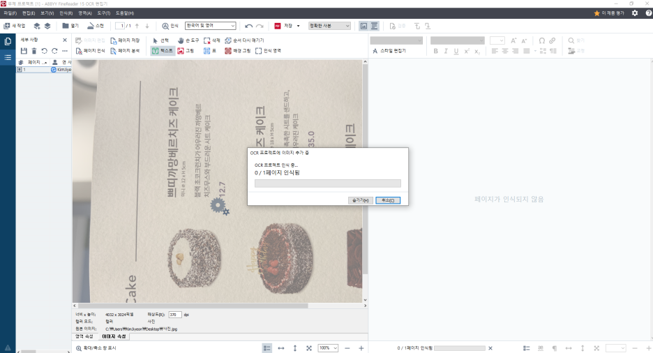 파인리더PDF에서 사진을 열기만 하면 사진 속의 글자가 자동으로 인식되어 글자 추출이 가능한데요.