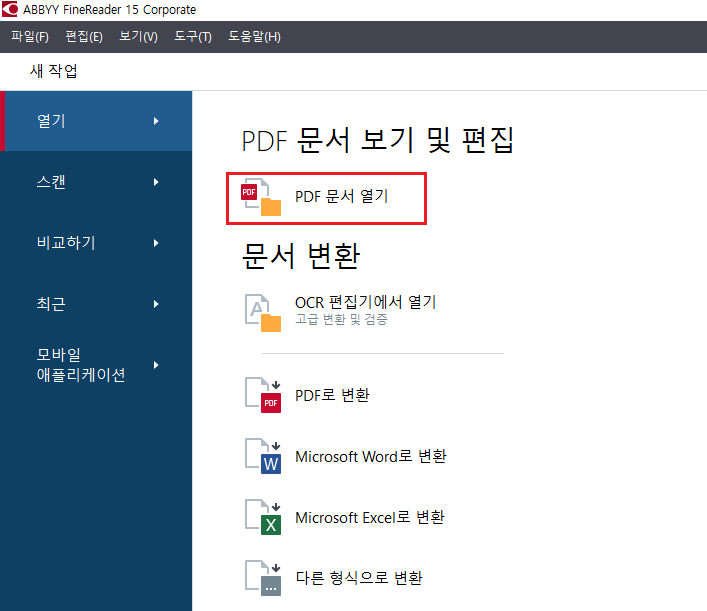먼저 PDF 문서 열기로 문서를 열어주세요.