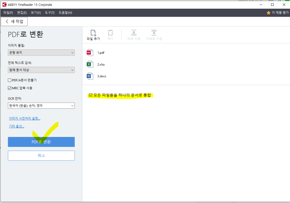 PDF합치기를 시작하기에 앞서 파인리더PDF15 무료 시험판을 설치해 주세요.
