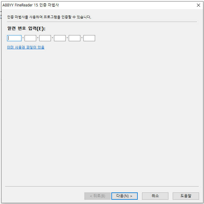 일련 번호 입력 란에 이메일로 받은 시리얼 키 를 정확하게 입력해 주신 후 다음을 눌러주세요.