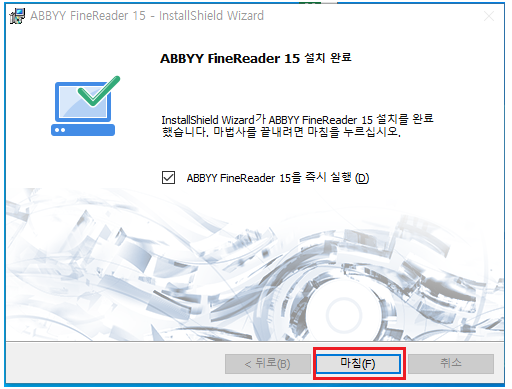 파인리더PDF 설치 완료 후 마침을 누르면