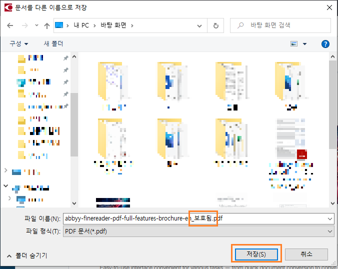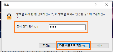 저장을 누르면 파일 이름에 "보호됨" 표시가 추가 됩니다.