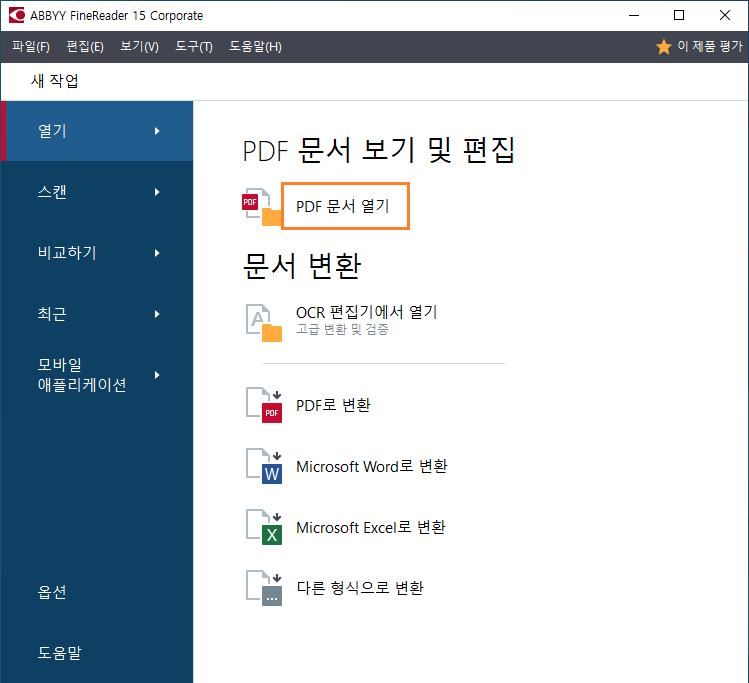 파인리더 15를 실행시킨 후 PDF파일을 열어주세요.