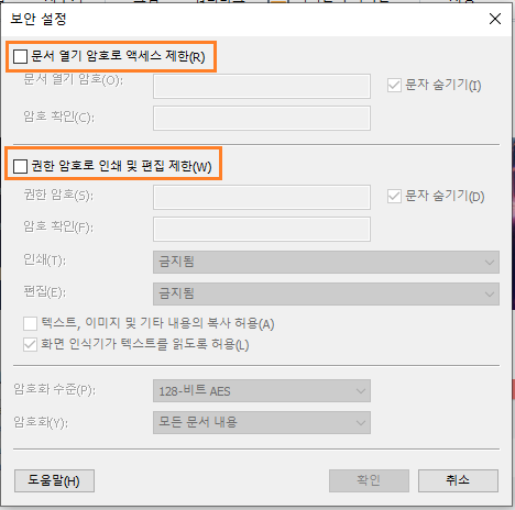 권한 암호로 인쇄 및 편집 제한에 체크 후 암호 입력 후 저장을 한다면 인쇄와 편집을 방지할 수 있습니다.