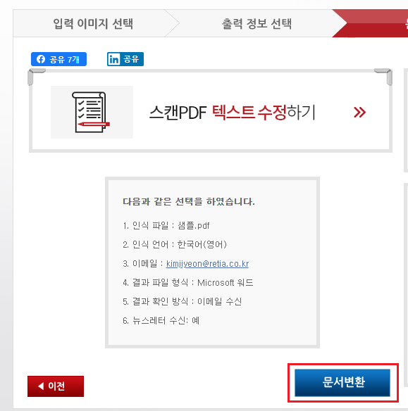 4. 문서 변환 버튼을 클릭해 주세요.