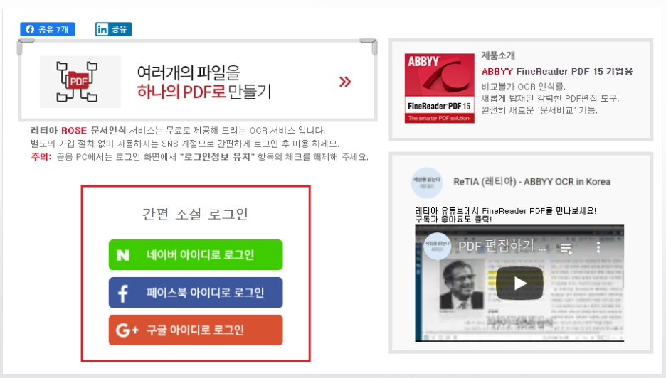 * 좀 더 정확한 OCR인식과 다양한 PDF변환이 필요하시다면 아래 ABBYY파인리더PDF15 시험판으로 테스트 해 보세요~