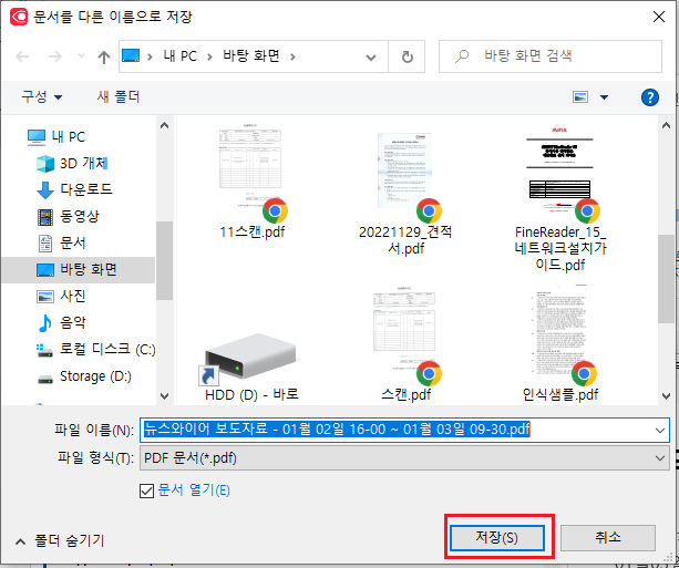 PDF 문서가 지정된 폴더에 저장됩니다.