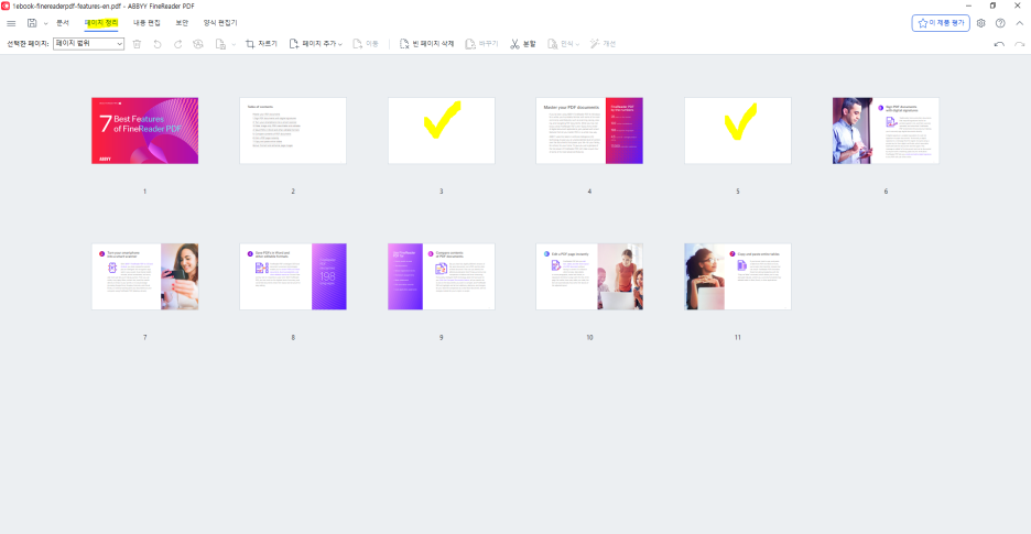 파인리더 PDF 16 업데이트에 PDF편집 기능 중 빈 페이지 감지 및 삭제 기능이 추가 되었습니다. (업데이트는 파인리더 상단의 도움말 > 업데이트 확인 에서 진행 할 수 있습니다.)