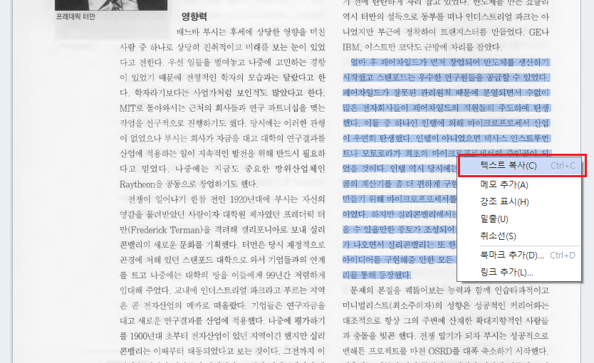 3. 문단을 드래그 한 상태에서 마우스 오른쪽 클릭을 하여 텍스트 복사도 가능합니다.
