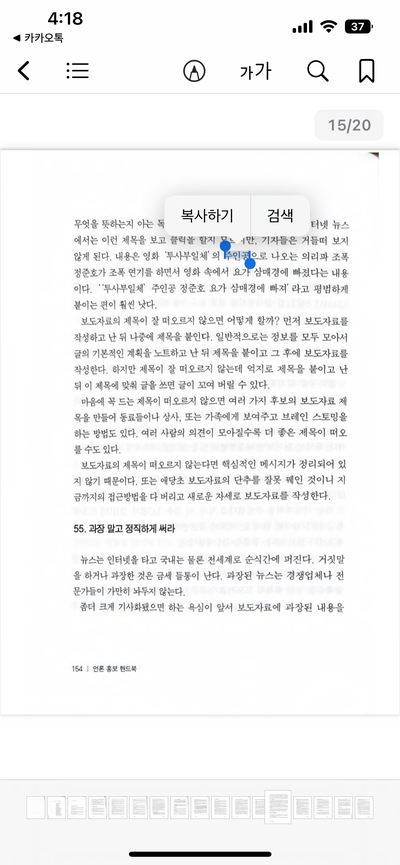 검색가능한 PDF로 만든 파일을 다시 아이폰으로 옮기고, 아이폰에 있는 도서 앱에서 열어보세요.