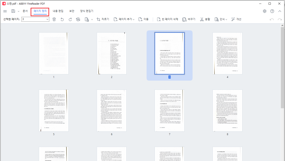 필요하다면 페이지 정리 탭에서 빠진 페이지는 없는지, 방향이 잘못된 페이지는 없는지 한 눈에 확인 할 수 있고 수정도 가능 합니다.