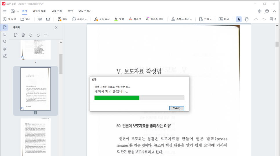 3. OCR 인식 후 검색 가능한 PDF로 변환하기 (PC에서 파인리더PDF 사용)