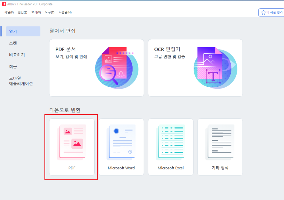 파인리더PDF를 실행하고, PDF로 변환을 클릭하여 변환시킬 사진을 선택 합니다.