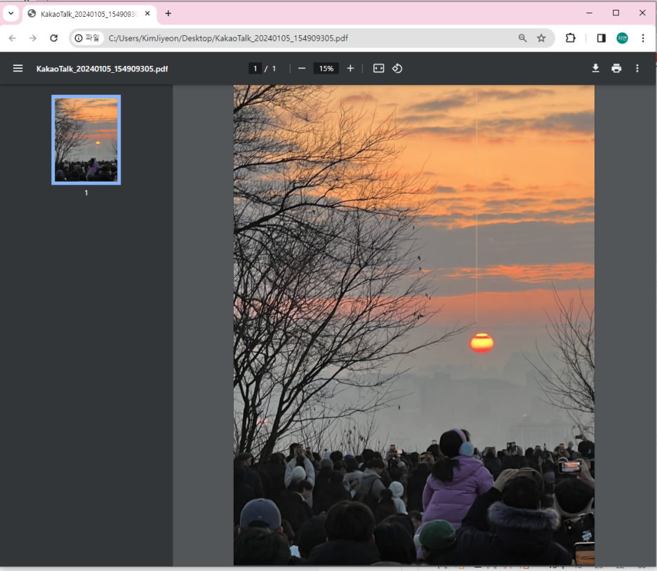 이폰으로 찍은 갑진년 새해 일출 사진입니다. 이 사진을 파인리더PDF를 사용해서 PDF파일로 변환해 볼게요.
