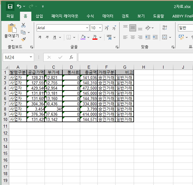 이렇게 엑셀로 변환이 가능합니다. 오타 없이 각 셀에 알맞게 들어간 것 보이시나요?