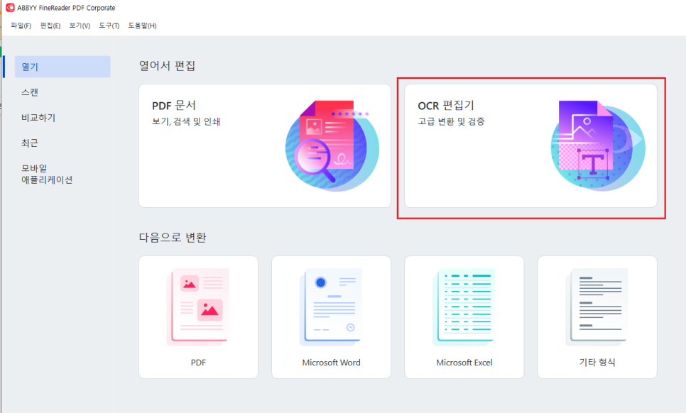 파인리더PDF를 실행하고 OCR편집기에서 문서를 열어 줍니다.