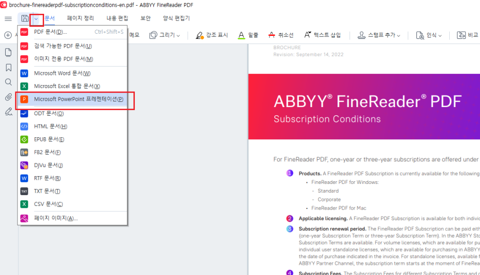 PPT파일을 PDF로 바꾸는건 PPT파일 안에서 쉽게 할 수 있지만, 거꾸로 PDF를 PPT파일로 바꿔야 한다면! 당황하지 마시고 파인리더PDF를 사용해 보세요. 쉽고 빠르게 변환 할 수 있습니다. PDF파일을 PPT파일로 변환하는 방법을 알려 드릴게요.