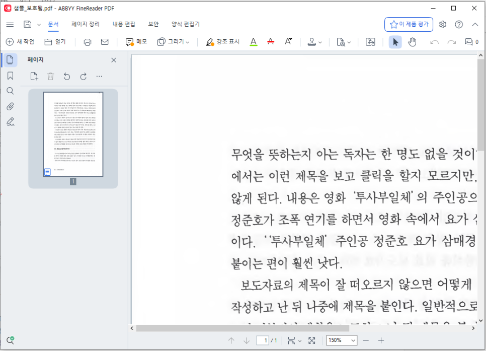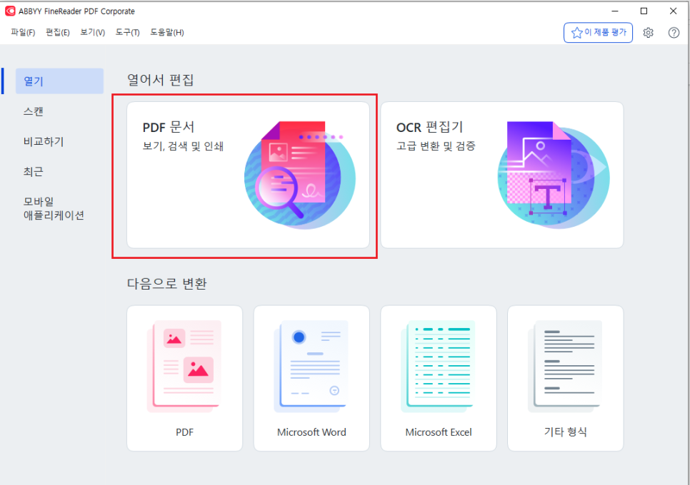 파인리더 PDF를 실행 합니다.