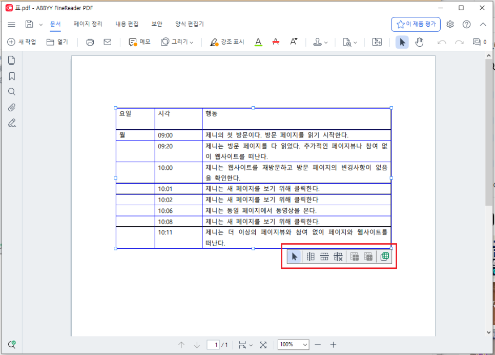 파인리더PDF를 실행하고, PDF표 문서를 열어주세요.