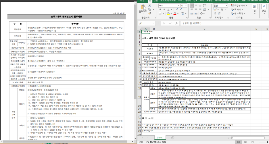 (왼쪽) 원본PDF파일 / (오른쪽) 변환된엑셀파일