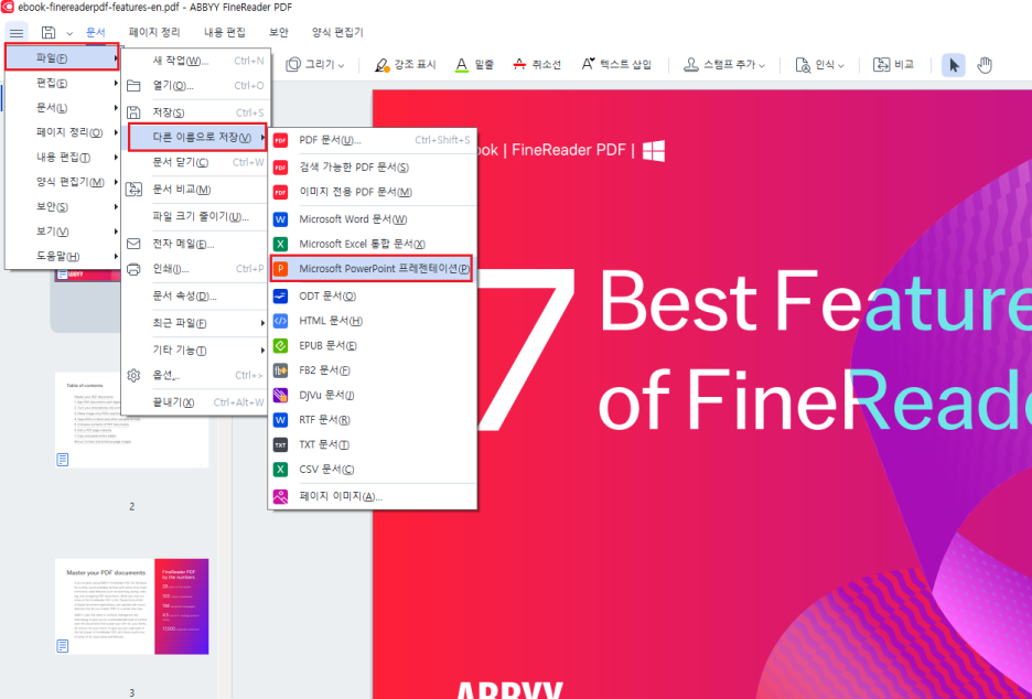 ABBYY FineReader는 PDF 레이아웃을 유지하면서 정확하게 PPT로 변환해주기 때문에, 발표 자료나 강의 자료를 바로 만들 수 있습니다.