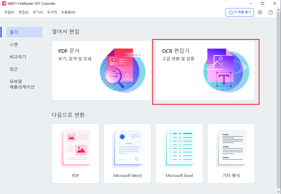 1. 파인리더를 실행합니다. OCR편집기에서 PDF를 열어주세요.