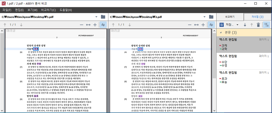 또한 기업용 버전에 있는 문서비교 기능에서