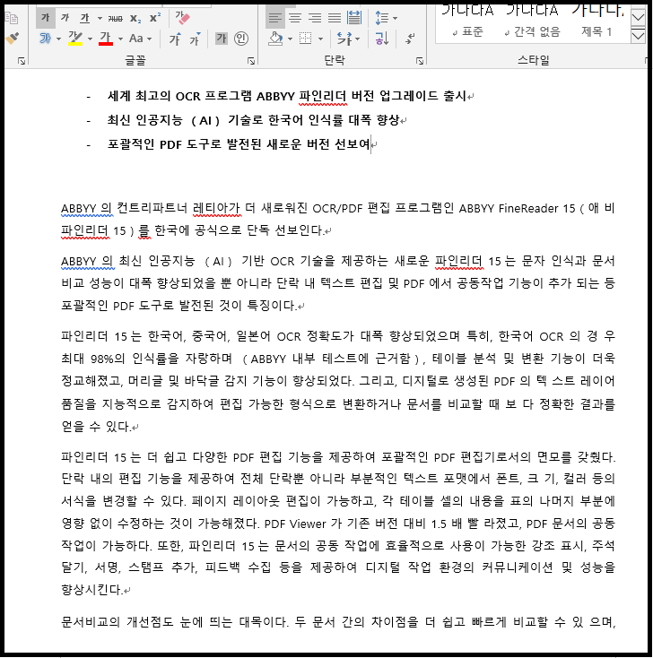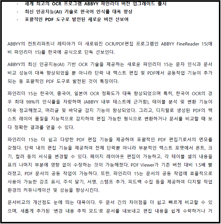 파인리더 15 OCR 한국어 정확도!! 자랑할만 하죠?