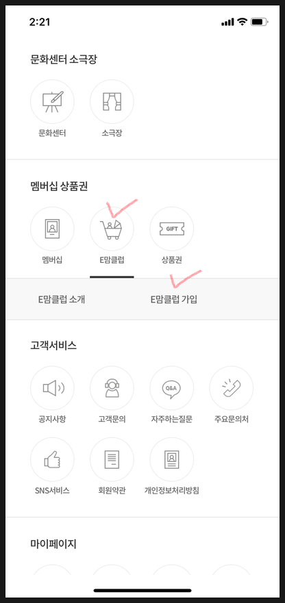 이랜드리테일 앱 설치 > 회원가입 > E맘클럽 가입 >
