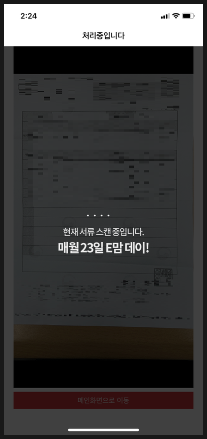 위의 화면 처럼 등본을 스캔 하면 촬영 버튼을 누르지 않아도 자동적으로 사진이 찍히게 됩니다.
