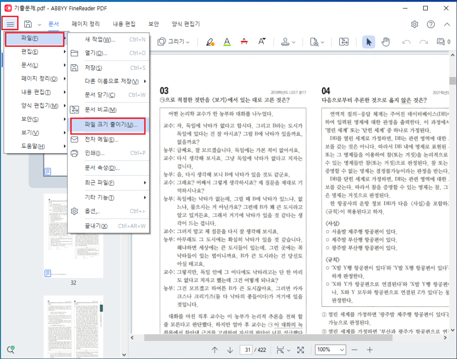 파인리더 14 문서 비교 기능